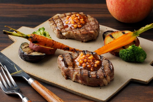 ・国産牛フィレ肉のグリエ、秋野菜のグリル 林檎と赤ワインのソース