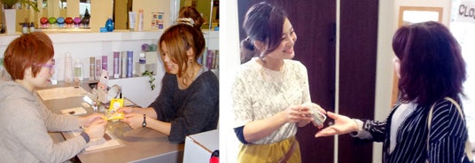 →お客様のカラーやパーマの待ち時間にドリンクに添えて提供、または会計の際に商品を手渡し