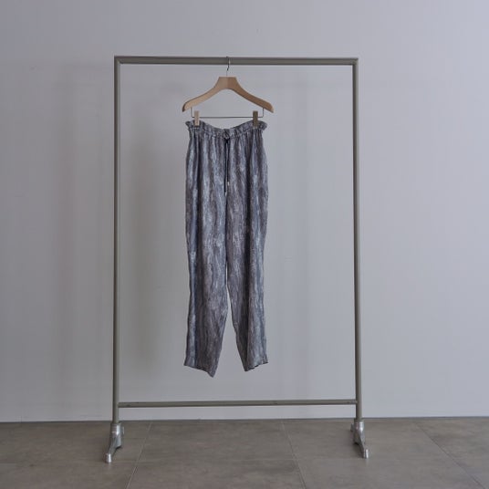 Namika Nakaiのファインアート作品からインスピレーションを受け作成したオリジナルジャガード素材を使用。艶やかで程よい落ち感のあるジャガード素材は、桐生で織り上げた世界で一つだけの特別な素材です。(ジャケット・パンツ共に同素材)