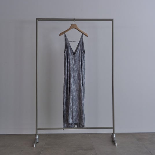 パンツとのレイヤードスタイルも楽しめるよう長すぎない丈感に仕上げ、脇にはスリットが入っているため足さばきも快適な1枚です。胸元の共紐が、シンプルなワンピースに奥行を与えてくれ、1枚で着てもサマになるアイテムです。