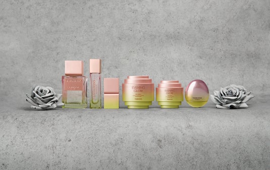 新しいイブニンググローコレクションは、パフューム(11ml/50ml)、パフュームバーム、パフュームシェルX(15ml/30ml)、ザ エッグ リップバームで構成されており、さまざまな製品と容量で体験できる。すべての商品のパッケージにはバラと夕焼けを連想させるグラデーションが施され、すでに発売されている商品とは差別化された印象を与えてくれる。