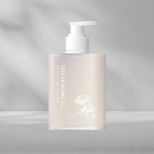 【OKAERI Hand Soap】2,980円(税込) 「肌も、心も、リセット。」をコンセプトに新たに誕生したTELESA HOMEの第一弾商品!あんずの種子を粉砕した天然スクラブがやさしく角質をオフし、抗酸化作用、保湿効果のある植物エキス等、お肌に良い成分を配合しています。また、天然ミネラル成分「マイカ」と、シャントリボディと同じ高級感あふれる香りで癒しを演出します。