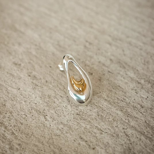 デスクやチェアなど、フレンチ・アール・デコの建築や家具にパリで多く触れてきたデザイナーが、その都会的で立体感のあるフォルムを表現。シルバーのモチーフにゴールドを閉じ込めた艶感のあるドロップのようなフォルムは、職人の繊細な技術が光ります。