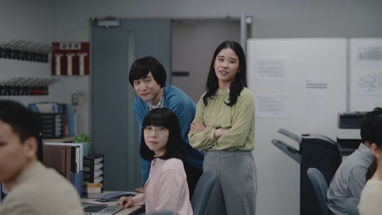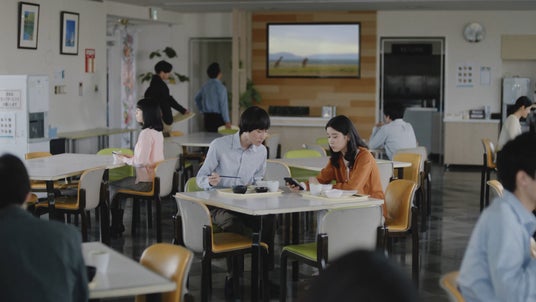 前回のCMでは、文系管理職の部長役の豊川さんが、キントーンで業務アプリを作るシーンを描きました。今回の舞台は食堂。昼食中にスマートフォンを片手に業務アプリを眺める社員たちが、その使い勝手のよさに感心しています。実は、そのアプリをつくったのは、豊川さんが演じる部長でした。自らつくった業務アプリがみんなの役に立っている様子を見て、喜びを噛み締める豊川さんの演技は必見で