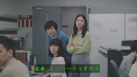 人材不足と技術の進化が重なりDXの重要性がますます高まる現代、ITの専門知識がない人をいかに巻き込むかが引き続き持続可能な企業経営の鍵になると考えます。シリーズ第二弾となる今回は、豊川さん演じる部長や社員たちが業務アプリをつくり、業務課題を次々に解決していく様子を、「うれしい部長」篇と「みんなつくれる」篇の全二篇で描きました。また、豊川部長不在でもアプリ作りに挑む社員たちを描いた「わたしもつくれる」篇と「みんなでよくする」篇をWebCMにて同時公開します。