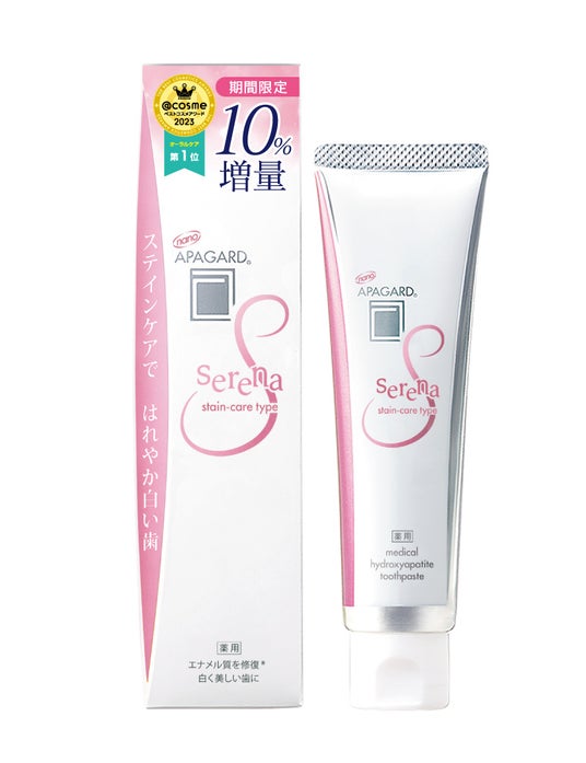 株式会社サンギ(本社:東京都中央区築地、代表取締役社長:ロズリン・ヘイマン)が展開する、美白高機能歯みがき売上No.1*シリーズ「アパガード」のステインケアタイプ「アパガードセレナ」が10%増量品を数量限定で発売いたします。増量品は2024年9月6日(金)より出荷を開始、全国のドラッグストアやスーパー、ホームセンター等で販売。パッケージ上部の10%増量マークが目印です。