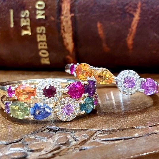 9月。彩月(いろどりづき)とも呼ばれるこの季節に、サンクルールの新色が登場しました。生き生きとしたサファイアの色彩と、深みのあるトルマリンの輝きが、ダイヤモンドによって美しく繋がったシリーズ。まるで鮮やかな花冠を纏うかのような、エレガントさです。秋の気配を感じさせる、落ち着いた大人カラー。目に映る色彩が変わり、毎瞬新たな美しさを感じられます。季節の移ろいとともに、あなただけの彩りをお楽しみください。