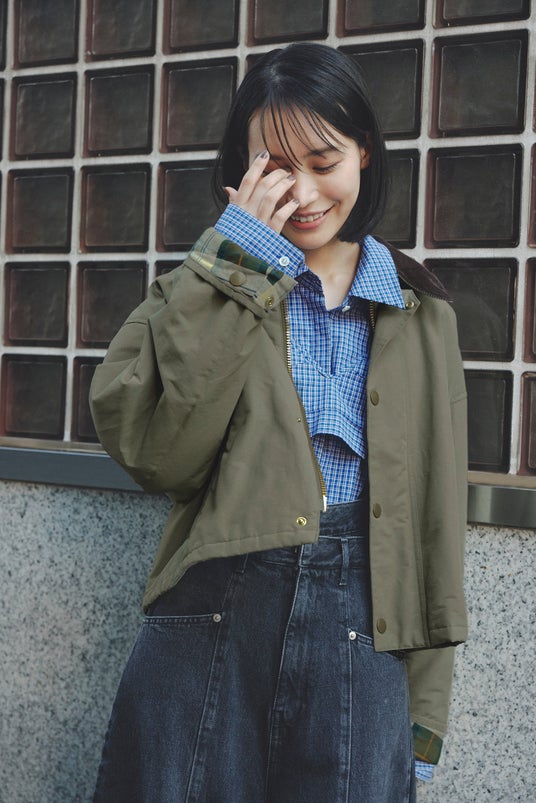 今回は、街の中にも溶け込むFRAY I.D限定デザインのBabourをブランドミューズである俳優・南沙良氏が着用したイメージビジュアルも撮影。
