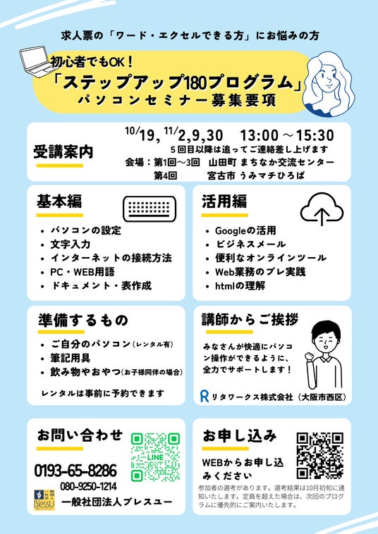 「ステップアップ180プログラム」は、岩手県沿岸部に住むシングルマザーが「実践しながら」パソコンスキルやビジネススキルを習得できるプログラムです。