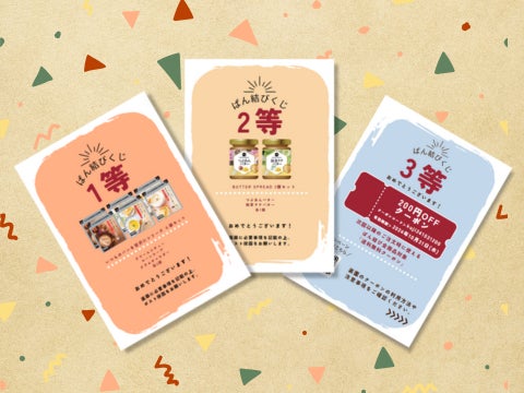 1等は「パンに合うシチュー&スープセット」、2等は「つぶあんバター&抹茶ラテバターセット」、3等は「ぱん結びにて次回以降の注文時に使える200円OFFクーポン」となっております。
