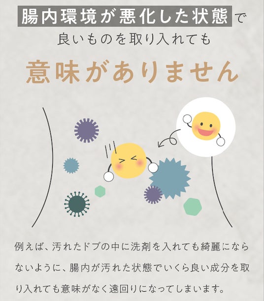 1つ目は、腸内環境が整っていない状態で良いとされているものをとっているので、なかなか腸内環境が改善していかないこと。