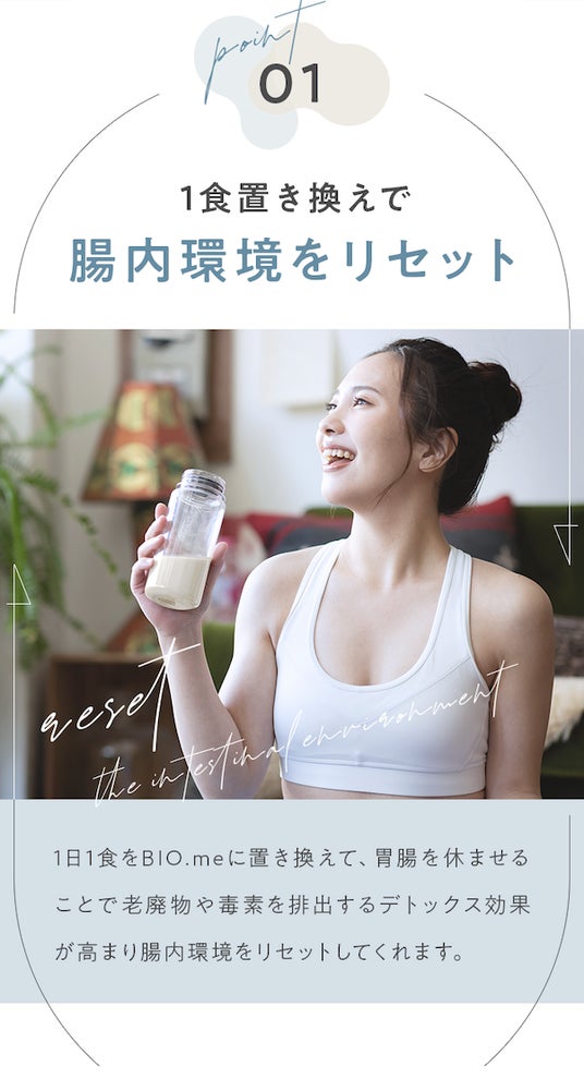 1日3食のうち1食をBio.me(R)に置き換えるという、無理なく続けられる腸活スムージーです。