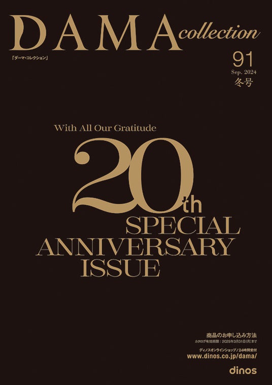 ディノスのファッションブランドDAMA Collectionは2005年の創刊以来、豊かな経験を積んだミドルエイジの女性に「本当に着たい」と思っていただける装いを提案し続けています。2024年9月13日発刊のVol.91号では創刊20周年を迎え、感謝の気持ちを込めた特別企画として、長年DAMA Collectionの誌面に登場し、数々の着こなしを表現してきたDAMA世代を代表する3人のモデルとのコラボアイテムを企画しました。