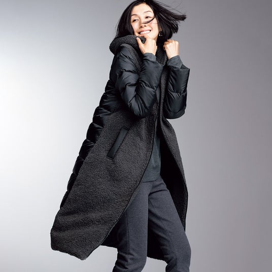 「ボアを部分使いした軽量ダウンは、コートインでも、一枚でも輝く優秀なアイテム。私自身もずっと欲しかったので作っちゃいました」と、未希さん自身が欲しいものをカタチにしてくれました。「軽やかなコートが主流の今、一枚でもレイヤードでも快適で、カジュアルでも優雅に見えるロング丈コートは、ひと際魅力的。季節の流れを楽しみながら、色んなシーンで長く愛用していただけたら嬉しいです」。未希さんが企画した「ウール混 一重仕立てコート」と合わせても、1枚で着ても・・・いろいろなスタイリングが楽しめる一着です。