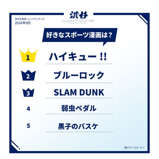 バレーボール漫画の「ハイキュー!! 」が3年連続で首位にランクイン。「バレーボールやっていたので気持ちがわかる」(高1・女子)「ハイキュー!! の影響でバレーを始めた!」(高2・女子)など高い共感性と熱いストーリーに惹きつけられているようで、2020年に連載が終了しているにも関わらず人気を博しています。2位には「ブルーロック」が入選。「アクションシーンがかっこいい」(高3・女子)「サッカーをしているシーンがオーラが出ていてかっこいい!」(高2・女子)といったプレー中の迫力あるシーンが印象に残っている様子がうかがえます。3位は「SLAM DUNK」が入選。「面白いしThe青春で試合の臨場感もあってドキドキするから」(高3・女子)「メンタル面や技術面でたくさん参考にしました」(高3・女子)などの意見が寄せられました。