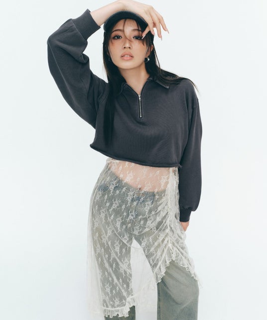 3.ピグメント裏毛ハーフジップ ¥4,490