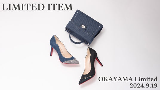 岡山一番街50周年を記念して特別感のある限定アイテムの登場。シューズからはパンプス・バックストラップ・フラットシューズの3モデルに、バッグからは大人気モデルに岡山ならではのデニム素材をご用意いたしました。この秋注目のデニム素材を小物でも取り入れて、今年らしいコーディネートが楽しめるアイテムに。数量限定となりますのでこの機会にぜひ店頭でご覧くださいませ。