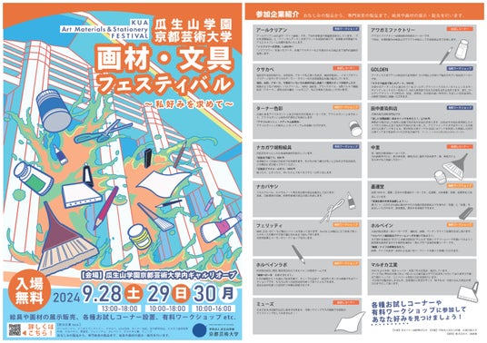 有名画材・文具メーカーによる展示販売を行います。無料の各種お試しコーナーや有料ワークショップに参加して、あなた好みの画材・文具を見つけてください!