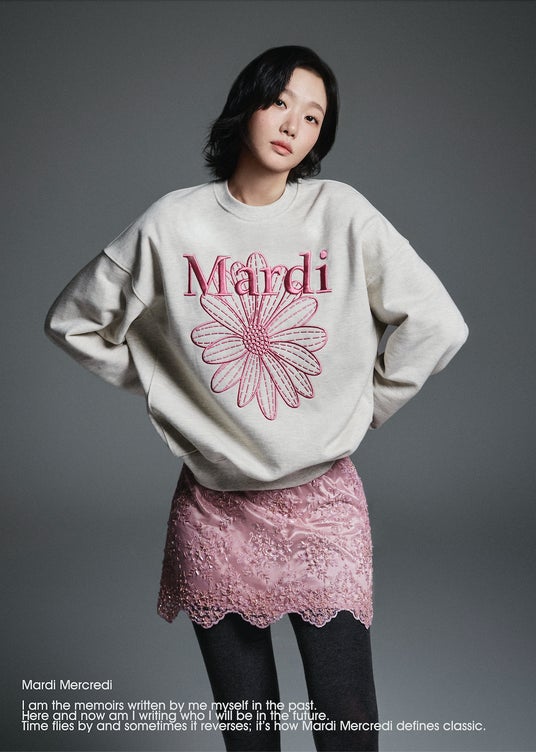 「Mardi Mercredi(マルディメクルディ)」のシグネチャーデザインである、「FLOWER MARD(フラワーマルディ)」と「DDANJI(ダンジ)」スウェットシャツは、オートミール、グレー、ブラックなどの人気カラーが24FWバージョンとなって登場。特に、フラワーマルディスウェットシャツのロゴは刺繍で仕上げ、プレミアムな要素を加えたデザインとなっている。