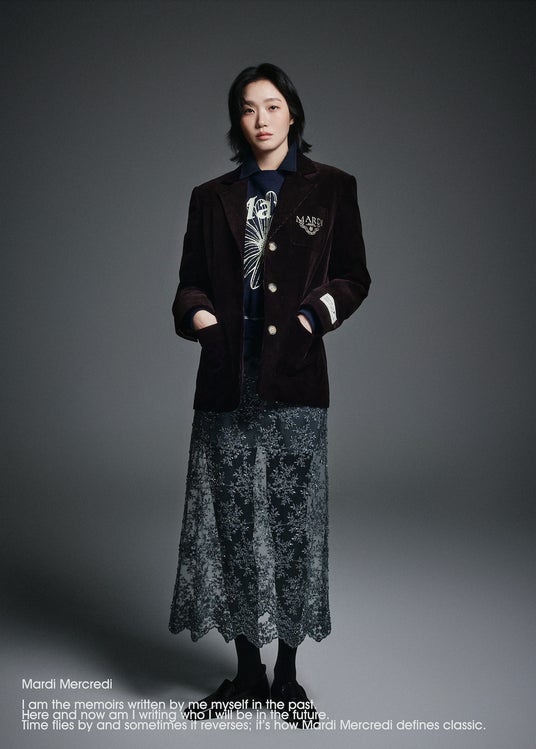 今回ミューズであるキム・ゴウンは、フラワーマルディの刺繍スウェットシャツとレースサテンスカートを演出したルックやネオプレーンピケシャツとパンツスカートの組み合わせで活気溢れる雰囲気を体現。また、コーデュロイジャケットとパンツ、ウールジャケットとスカートで完成したセットアップスタイルでキム・ゴウン特有のエレガントで気品が漂うルックを披露している。