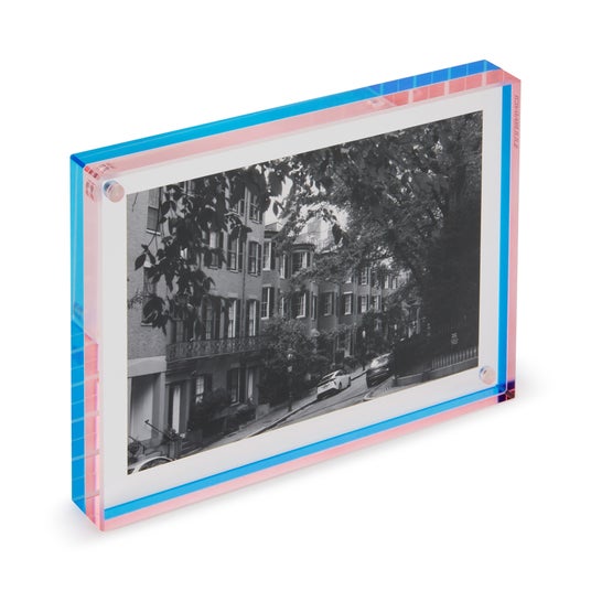 MoMA Exclusive:1994年にポストモダンのデザイナーNicolai Canetti(ニコライ・カネッティ)が「フレームレスなフレーム」としてデザインしたフォトフレームは、飾る写真やオブジェの邪魔になりません。今回の新バージョンは、MoMA限定のデュアルカラー仕様になっています。