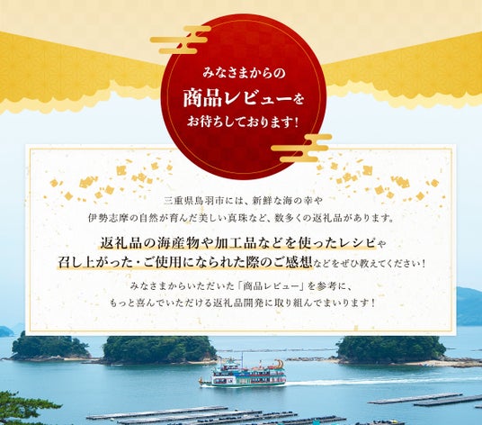 ・指定期間中に鳥羽市楽天ふるさと納税にて商品レビューをご投稿いただいた方が対象です。
