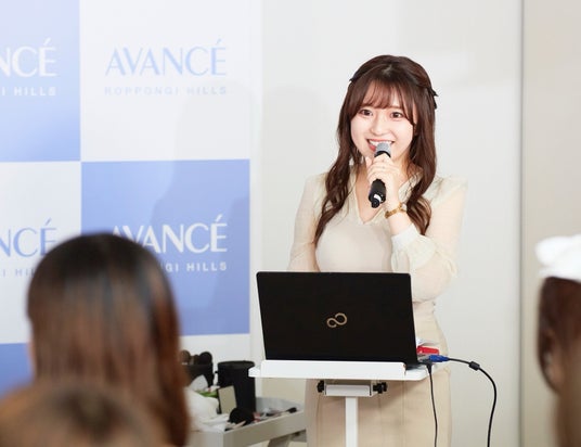 内容:アンバサダー笠野咲藍さんが登壇しヘアメイクアップアーティストによるアヴァンセ商品を使ってのベースメイク講座、美容に関する2択質問、フォトスポットでの撮影