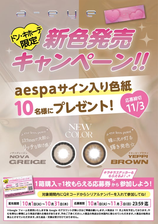 a-eyeを購入した人の中から抽選で10名様にaespaサイン入り色紙をプレゼント!!!