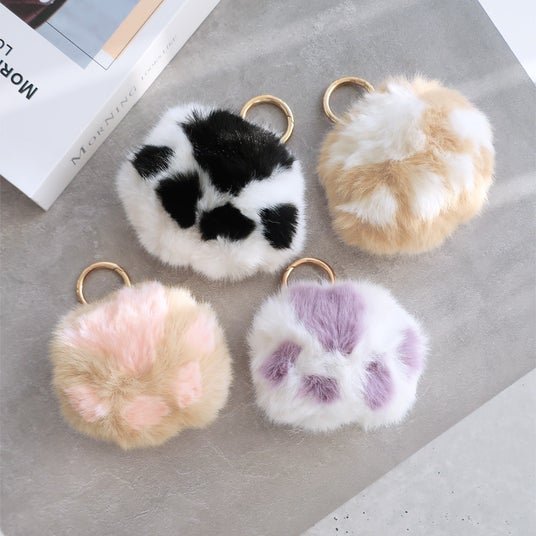 手触りのいいフェイクファー素材の肉球モチーフキーホルダー。