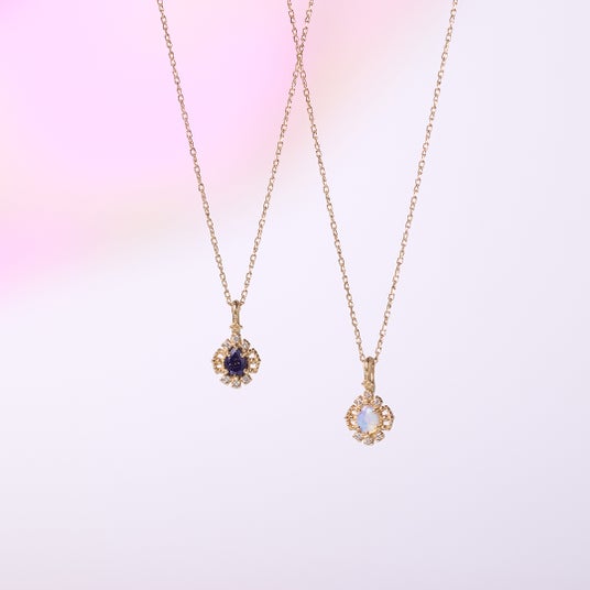 -Necklace-オパール、紫金石を中心に小さな星々をイメージしたダイヤモンドで飾り、バチカンにも星の細工を。瞬く星の光のようなランダムな輝きのチェーンが胸元に繊細な表情を添えるネックレスです。