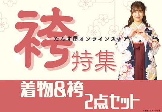 この度、リユース着物「たんす屋オンラインストア」では、卒業式にふさわしい、華やかな袴と着物をセットした「袴特集」をスタート。定番の古典柄から、トレンドを取り入れたモダンなデザインまで、様々な袴と着物のセットを数量限定でご用意しました。