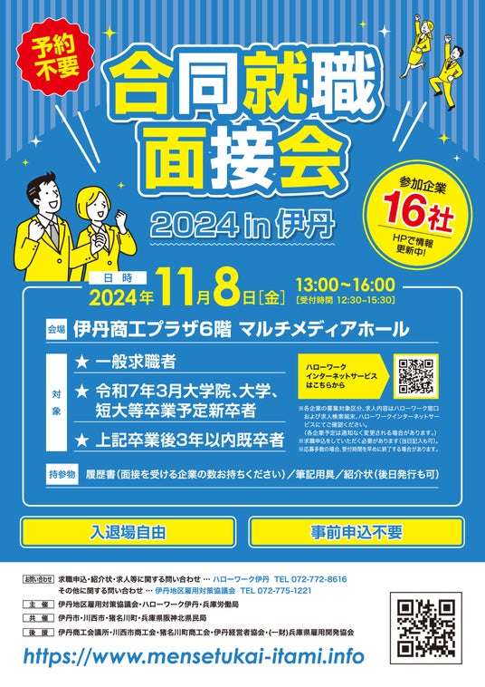 【合同就職面接会2024 in伊丹Webページ】https://www.mensetukai-itami.info/