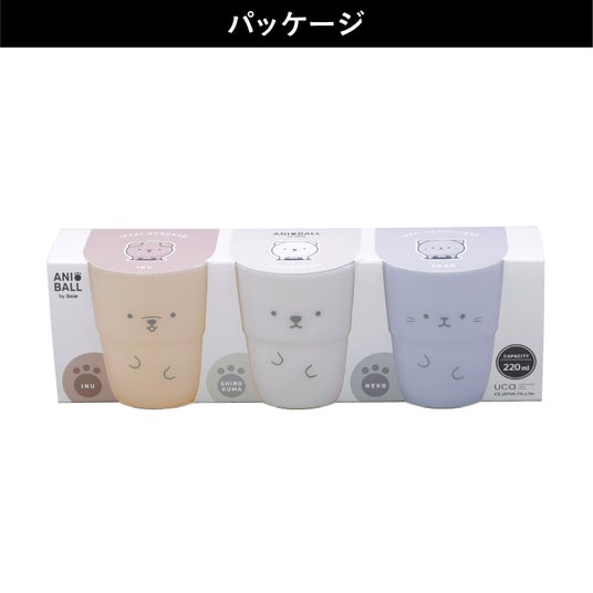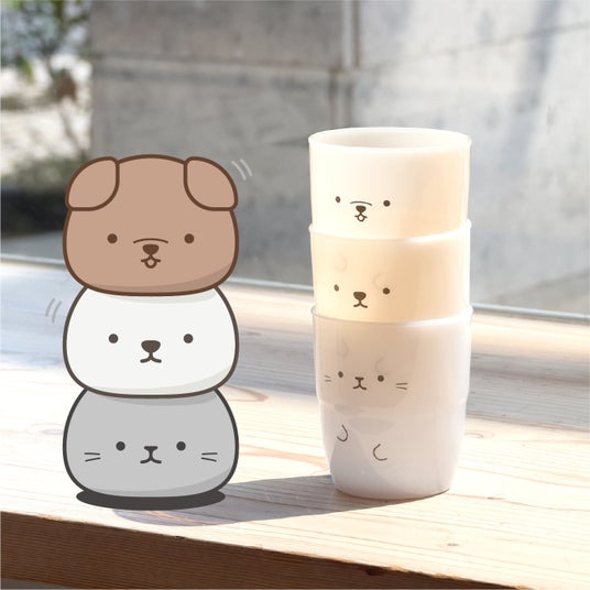 こちらのタンブラーは「イヌ」「シロクマ」「ネコ」がモチーフのコップが3個セットになっています。