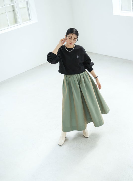 ・[SET]ロゴ刺繍ショートスウェット+タックギャザースカート