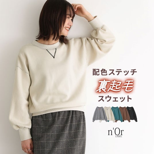 n’OrLABEL配色ステッチ裏起毛スウェット