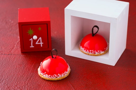 真っ赤なグラサージュでほろ苦いコーヒーとキャラメルナッツのムースを包んだ、キュートな見た目の「レッド・オーナメント」、赤とグリーンのクリスマスカラーのマカロンにトンカ風味のダークチョコレートガナッシュをサンドした「クリスマス・マカロン」、ピスタチオとアーモンドのしっとり生地を小さなクグロフ型で焼き上げ、生クリームとナッツをトッピングした香ばしい「ピスタチオクグロフ」、ハチミツとマスカルポーネのムースにアーモンドやピスタチオ、オレンジコンフィをミックスしてモンテリマールヌガー風に仕上げた「ハニー・ギフト」など、クリスマス気分を高める色鮮やかでかわいらしいスイーツが勢ぞろいします。