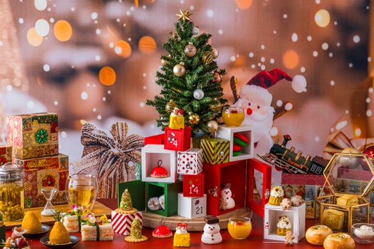 カラフルなボックスに配されたスイーツ&セイヴォリーで、クリスマスまでのカウントダウンを楽しむアフタヌーンティー