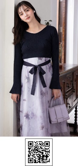 「オーガンジーフラワードッキングワンピース」は、これ1枚でコーディネートファッションのように魅せる、ウエスト部分がドッキングされている大人レディなワンピース。上身頃のニット部分は程よく体にフィットし、オーガンジー素材の花柄プリントスカート部分は裾に向かってふんわり広がります。このフィットとフレアーなシルエットが体のラインをきれいに見せ、女性らしく華やかな雰囲気を演出します。さらに取り外し可能な異素材のウエストリボン付きです。