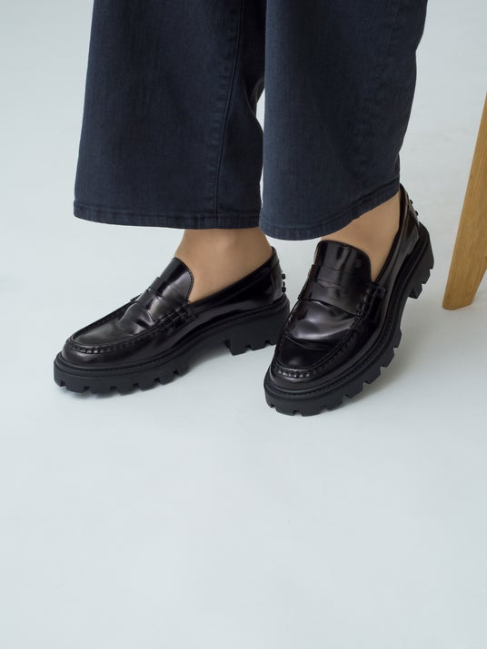 さらに今季のスタイリングには欠かせないボリュームソールのローファーもご用意しました。艶のあるレザーで仕立てられたローファーは、ブラックとブラウンの2色を別注しました。白いソックスにレギンスと合わせれば、スタイリングにモード感をプラスできます。