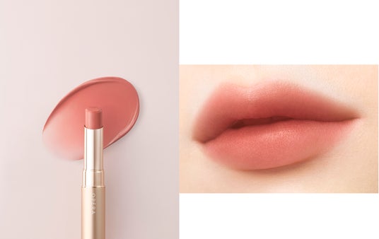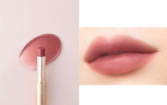 「唇を保湿しながら、ふわりとした‘ 透けマット’ な色づき。リップクリーム要らずで、ナチュラルな洒落感が漂う、パウダーレスマットリップ。」
