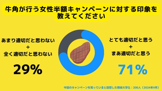 ■牛角の女性半額キャンペーンを知る大学生の75%が「適切である」と回答。