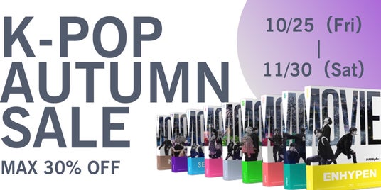 10月25日(金)~11月30日(土)開催のAUTUMN SALEで、『D’FESTA THE MOVIE DVD/ Blu-ray』、『DICON』などのK-POP神アイテムの本体価格が30%オフに
