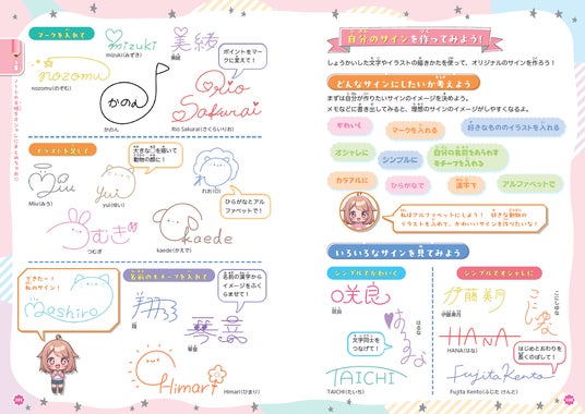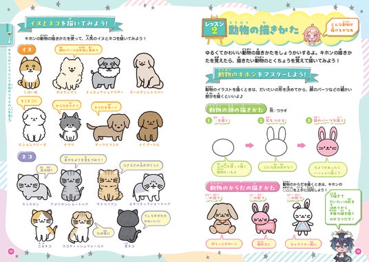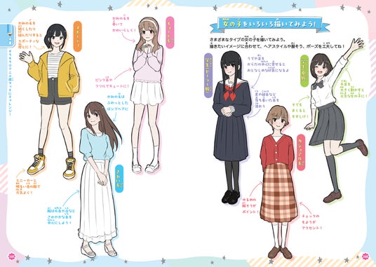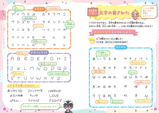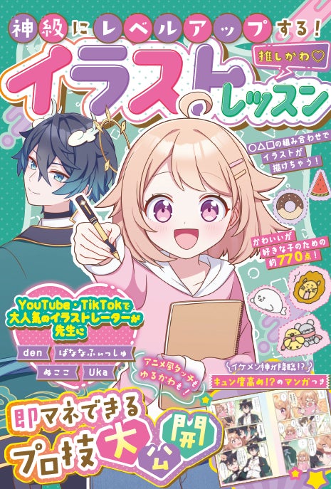 YouTubeやTikTokで活躍する人気イラストレーターが先生として登場、約770点のイラストやアイコン、文字の描き方を伝授します。〇△□をベースとした、ささっと描けるゆるかわイラスト、アニメ風タッチのほか、オトナ文字の書き方、サインの作り方まで、女子小学生が知りたい要素を詰め込みました。また、描いたイラストを活用して、ポスターデザインの考え方、授業ノートのまとめ方、推し活グッズの作り方等を紹介しているのもポイントです。毎日の学校・生活がもっと楽しくなるよう願いを込めて制作しました。
