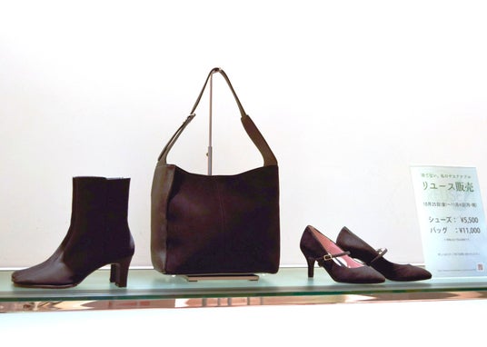 この取り組みの一環として、お客様から回収した銀座かねまつブランドの製品に「捨てない。私のサステナブル #530(ゴミゼロ)」と同様の修理を施したシューズとハンドバッグを、期間限定で販売いたします。