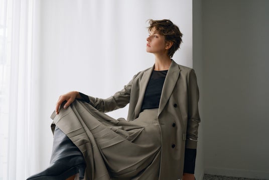 イテムとレイヤードすることで、素材のコントラストや抜け感を楽しめる一着です。