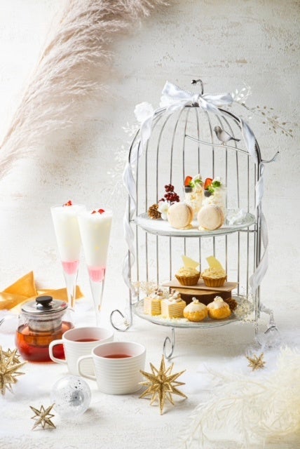 雪をイメージした純白のスイーツスタンドによる『バニラ&ホワイトチョコレート』のアフタヌーンティー