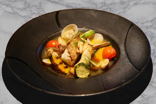 【Fish】真鯛のポワレ 旬の野菜添え 黄金色のサフランスープ +700円