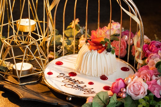 ”鳥籠に入った特製ケーキ”または”特製デザートの盛り合わせ”が付いておひとり様2,980円(3,278円)