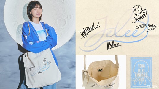 オリジナルのロゴとJELEEメンバーのサインをデザインに組み込んだトートバッグ。普段使いもしやすい大判サイズでの展開。