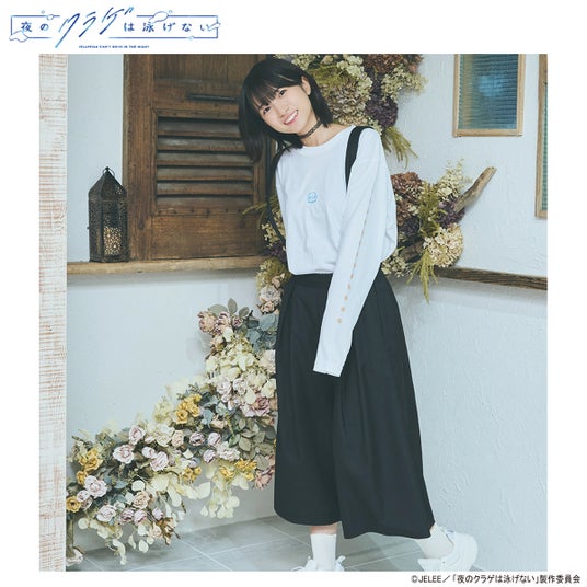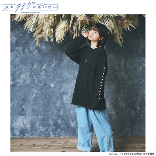 クラゲをモチーフにしたオリジナルロゴの刺繍と、袖口に「JELEEちゃん」の特徴でもある斑点をあしらったロングスリーブTシャツ。ホワイト・ブラックの2色で展開。